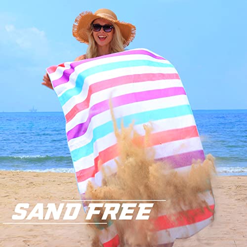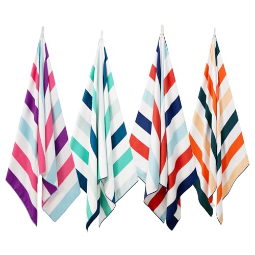 Exclusivo Mezcla 4 Pack Large Quick Dry Beach Towels, Microfiber Sandfree Cabana Stripe Pool Bath Swim Towel with Bag, Lightweight and Thin (Multi, 30×60 Inches)