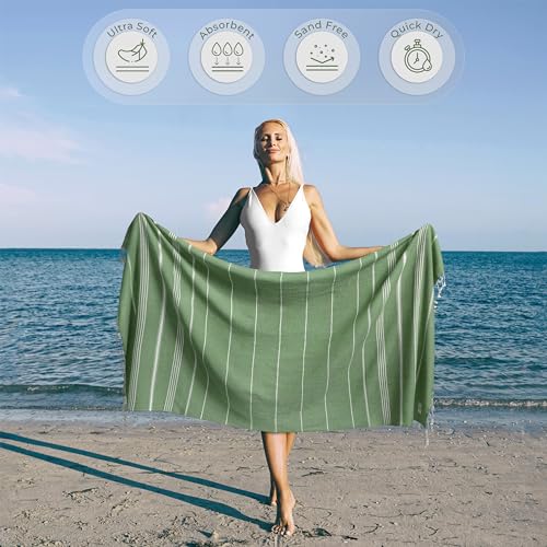 Home - Essential Travel Gear - Ossano Turkish Beach Towel Absorbent & Quick Dry Oversized (39″ x 71″) – Decorative, Versatile and Functional as Yoga Mat, Picnic Blanket, Travel Blanket, Bath, Cruise, Gym Towel – Green