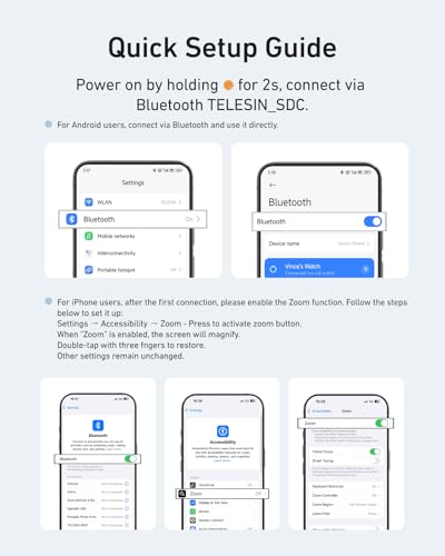 Product Notes : Package includes: Diving Handle *1, Vacuum Pump *1, USB Charging Cable *1, Safety Wrist Strap *1, Cleaning Cloth *1, User Manual *1. If you are using an iOS device, for the first connection, please follow these steps to unlock all features: go to Settings → Accessibility → Zoom → Zoom Region (Full Screen Zoom) → turn on Zoom. When Zoom is enabled, the screen will be magnified; double-tap with three fingers to return to normal. No other settings need to be changed.