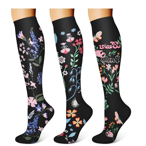 WITHYOU 3 Pairs Compression Socks for Women & Men 15-20 mmHg,Best Support for Nurses Running Hiking