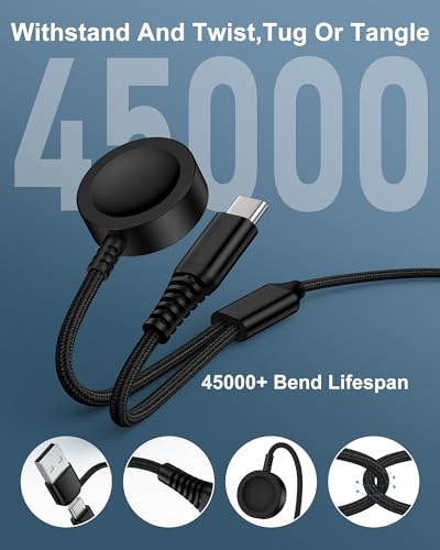 6.【Easy to Carry】- The 4FT nylon braided Samsung Galaxy Watch7 charger cable is lightweight, compact, and durable, making it easy to carry in a bag or pocket. Whether you’re traveling, working, or commuting, you can easily take it along for all your charging needs without the bulk of a longer or more rigid cable.