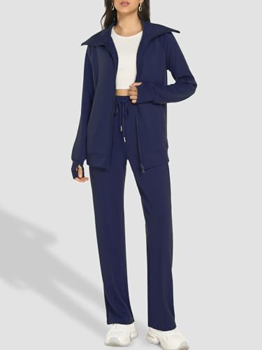 Casly Lamiit Two Piece Sweat Sets for Women Lounge Outfits Matching Travel Sweatsuit Fall Casual Zip Up Track Jacket Athletic Clothing Navy Blue M