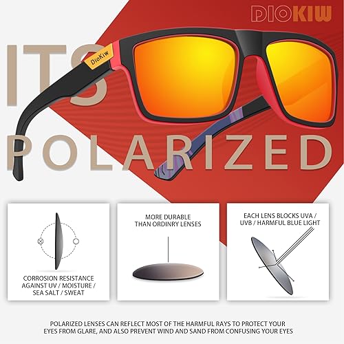 DioKiw Polarized Sunglasses for Men Sporty Style Design Driving Travel Sun Glasses Lightweight Square Frame UV Protection Goggles