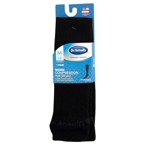 Dr. Scholl’s Men’s Athletic & Work Compression Over the Calf Casual Sock, Black, 7 12 US