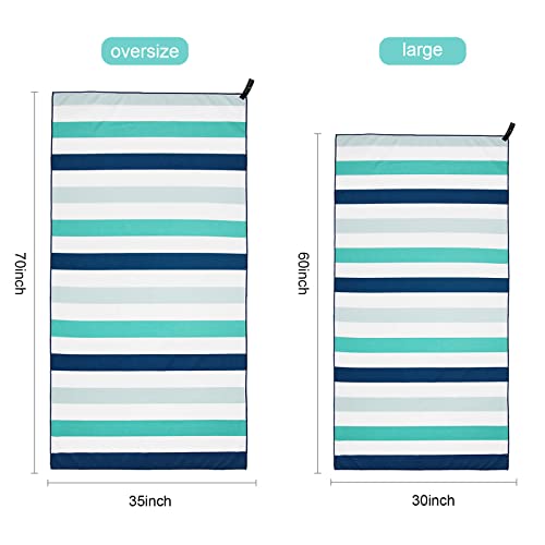 Exclusivo Mezcla 2 Pack Large Quick Dry Beach Towels, Microfiber Sandfree Cabana Stripe Pool Bath Swim Towel with Bag, Lightweight and Thin (Green and Purple, 30×60 Inches)