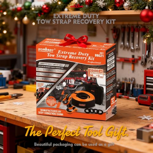 HORUSDY Nylon Heavy Duty Tow Strap Recovery Strap with Hooks 3″ x 30Ft – 35,000 LBS Break Strength, 2″ Shackle Hitch Receiver + 3/4 D Ring Shackles (2pcs), Recover Your Vehicle Stuck in Mud/Snow