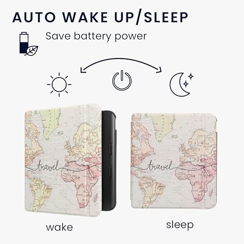 kwmobile Case Compatible with Kobo Libra Colour Case – eReader Cover – Travel Black/Multicolor