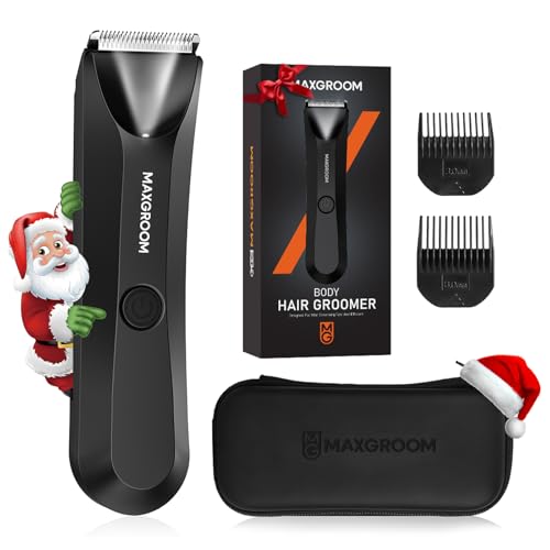 MAXGROOM Manscape Body Hair Trimmer for Men, IPX7 Waterproof Pubic & Groin Hair Trimmer- Electric Ball Shaver with LED Light, Ceramic Blade, USB Rechargeable & Travel Pouch