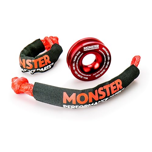 Monster Performance Off-Road Recovery Kit, 29.5 ft Nylon Kinetic Rope, 8 ft and 30 ft Tow Straps, Synthetic Rope Soft Shackles, Aluminum Snatch Ring, Load Tested, ATV UTV SXS