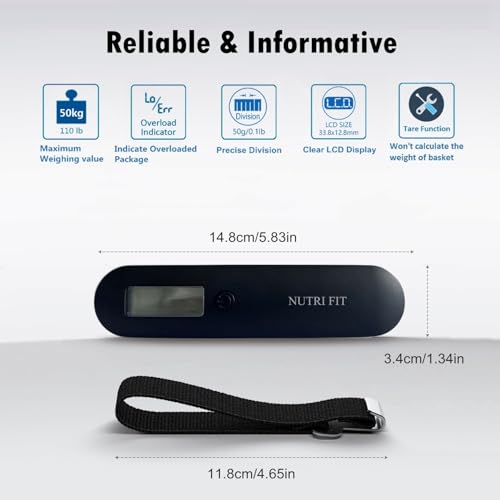 NUTRI FIT Luggage Scale Travel Digital Suitcase Weight Scale Portable Bag Weighing Scale Baggage Weigher, LCD Display 110lb/50kg Electronic Handheld Balance for Packages Airplane Travel Essentials