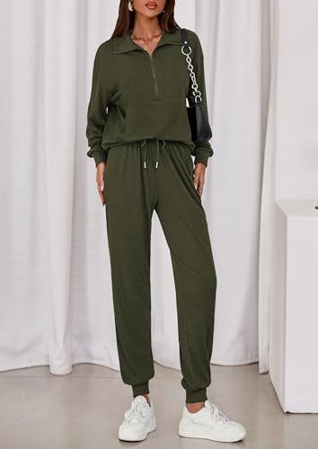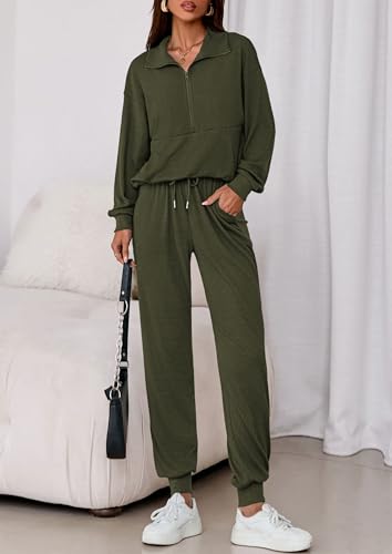 PRETTYGARDEN Women’s Fall 2 Piece Lounge Sets Zip Up Sweatshirt Jogger Pants Sweat Track Suits Travel Outfit Winter Clothing (Army Green,Large)