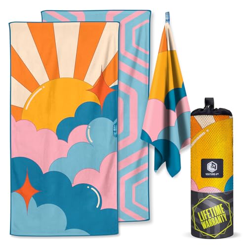 VENTURE 4TH Microfiber Beach Towel: Quick-Dry, Compact, Sand-Free, Absorbent, Sandproof and Lightweight – Perfect for Camping, Beach, and Roadtrips (Sky’s The Limit Design | 35×78 inches)